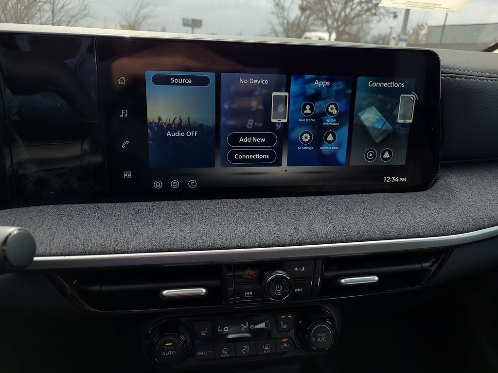 - Radio: AM/FM/SiriusXM Audio System -inc: 12.3" color touchscreen display w/4 speakers, Bluetooth® hands-free phone system, streaming audio via Bluetooth®, NissanConnect featuring wireless Apple CarPlay, wireless Android Auto, Siri eyes free and hands-free text messaging assistant, audio and Bluetooth® steering wheel switches